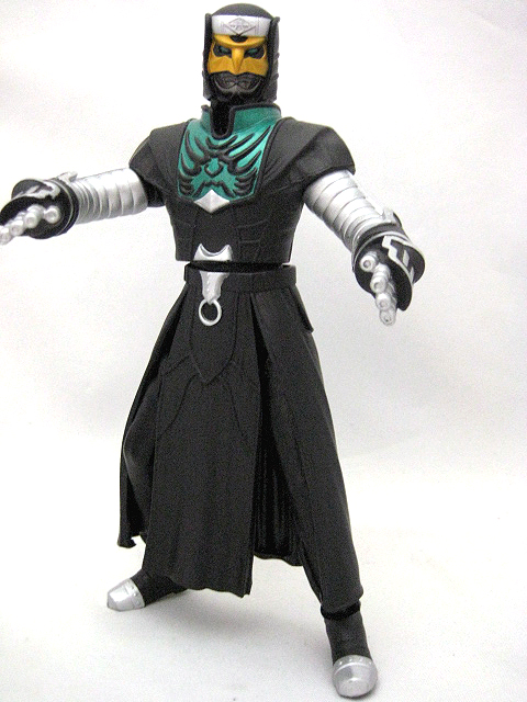 スーツの袖を銀色の布で作れば関節が目立たないように出来そうなんですが、この曲がった手もけっこう味わいがあるのでソフビの地を生かす方向でそのままにしました。