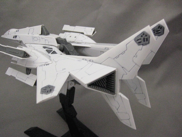 写真はパチ組み+スミ入れ、クリアパーツと翼端のグレー部分のみ塗装して後は半つやのコートを吹いただけなんですが、大して手を加えなくてもそこそこ見栄えのするものができるというのがまず驚きでした。