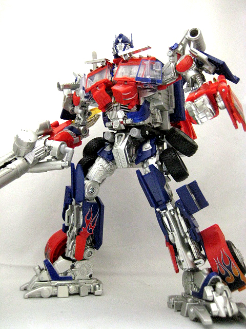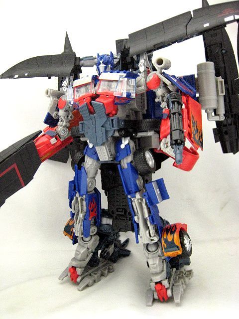とにかく元のジェットファイアー自体も相当大きいものですからそれに同じくらいの体積のオプティマスが合体するので奥行横幅が相当大きく、そしてこれの数カ月後に登場するサ○ライハオーと偶然一致するかのような2人羽織のような横からの外見と置物加減(笑)