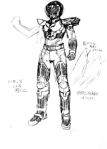 あとはブレイドとかファイズのスーツのイメージを盛り込みながら、あまりゴテゴテしない様にしたりとか。