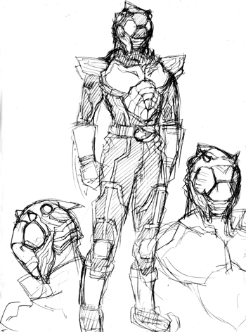 デザインは最近のSICのような有機的なものでなく、いかにもプレックスとかレインボー造形が作りそうなちゃんとしたスーツとはどういうものかということであまりかっこよくなり過ぎないように、それでいてかっこ悪くないように今公開中のディケイドの映画に混ぜても分からないような感じのデザインにしようと(笑)
