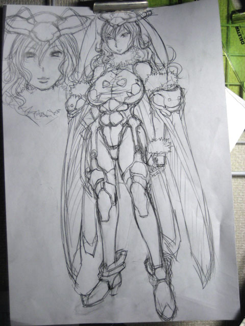 左と中央のものが魔神さんの起こしたラフ、右がそれを元に自分が起こした絵です。