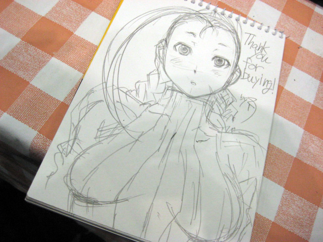 昼過ぎからはスケブを一杯お願いされたんですけど、一気に5~6人待ちと言うのはなかなかプレッシャーだったりもしたので何人かの方はお断りせざるを得なくて申し訳なかったです…